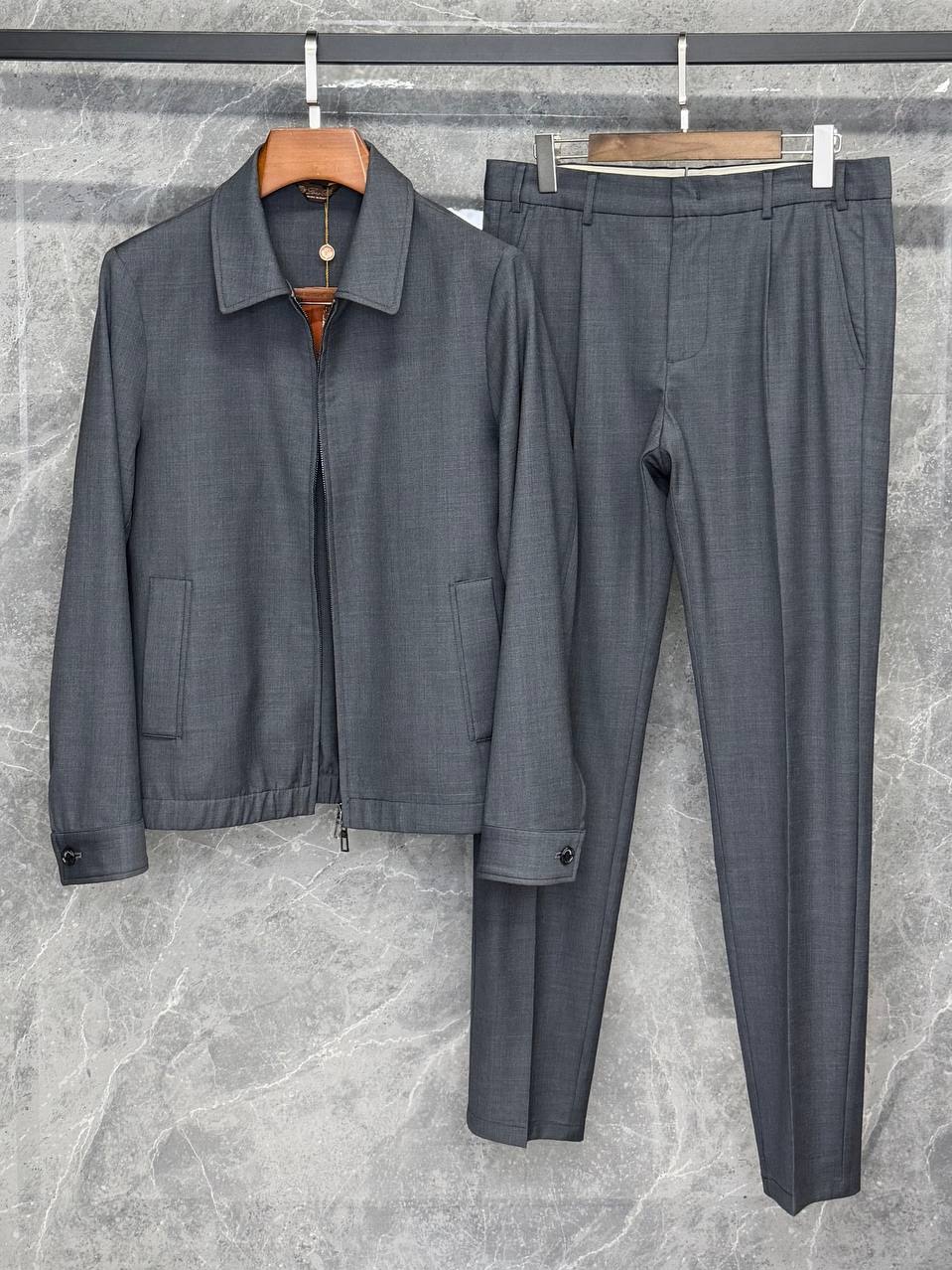 Классический мужской костюм из эксклюзивной шерсти Loro Piana — воплощение сдержанной роскоши и итальянского мастерства. Благодаря изысканной текстуре ткани, легкости и благородному блеску, костюм идеально сидит по фигуре, подчеркивая строгий силуэт.