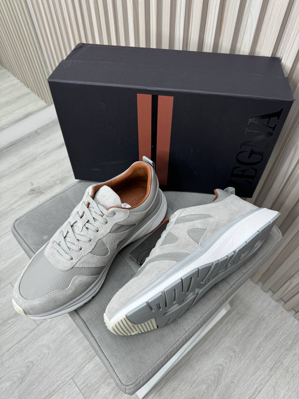 Кроссовки ZEGNA из замши и кожи. Лёгкая удобная модель из премиальных материалов.